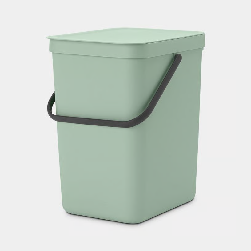 Don't waste any time thinking about waste disposal, organise it once and for all with the Brabantia Sort & Go Recycle Bin 25 litre. A beautiful, space saving solution for separating, collecting & transporting waste. Feed it your empty packaging, bottles, cans and anything else you want sorted. It fits snugly in corners, flat against the wall - you can even hang it. Easy to clean and it has a large handle for easy carrying and emptying too. Happy organising!